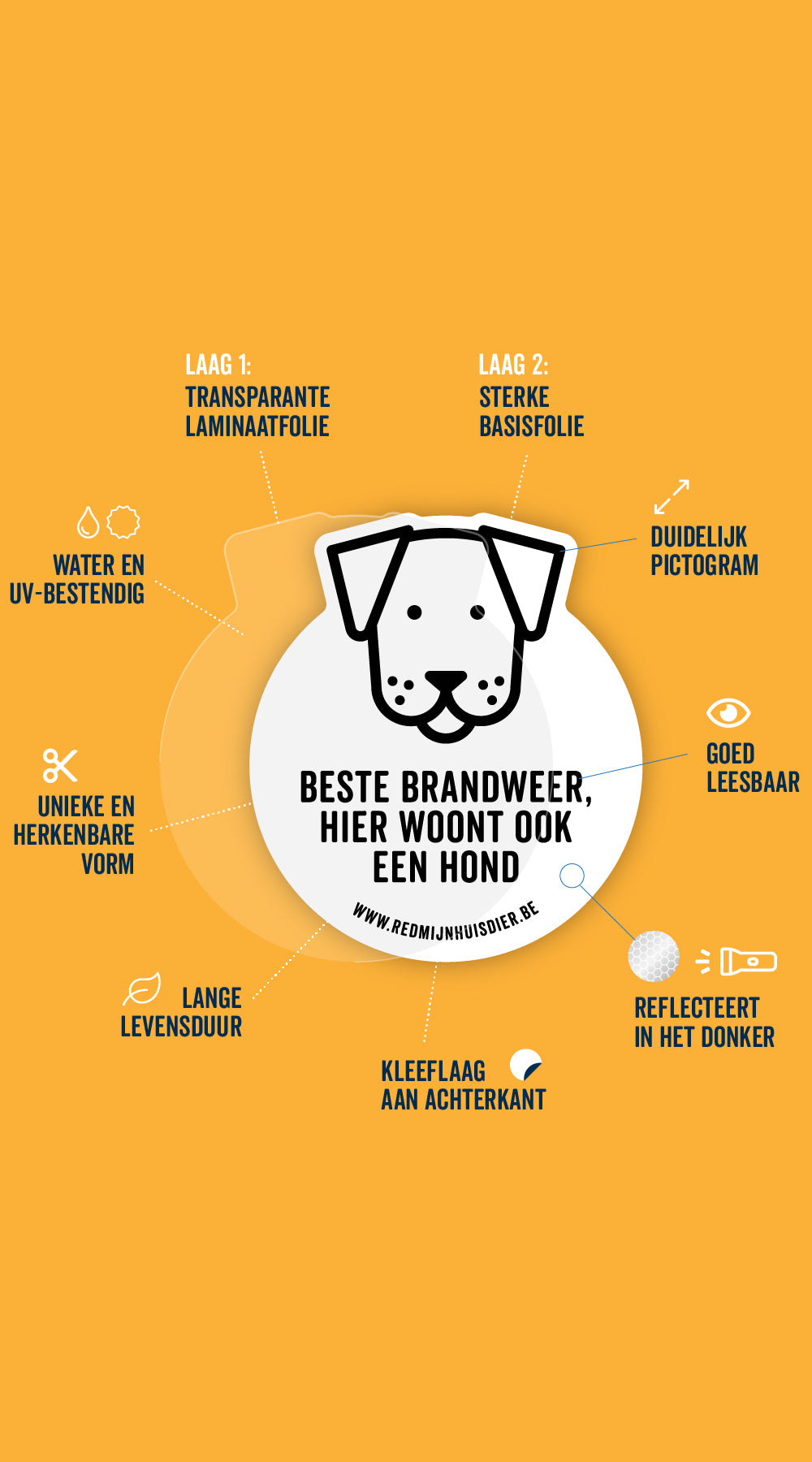 Dit maakt de sticker goed zichtbaar in het donker voor de hulpdiensten.